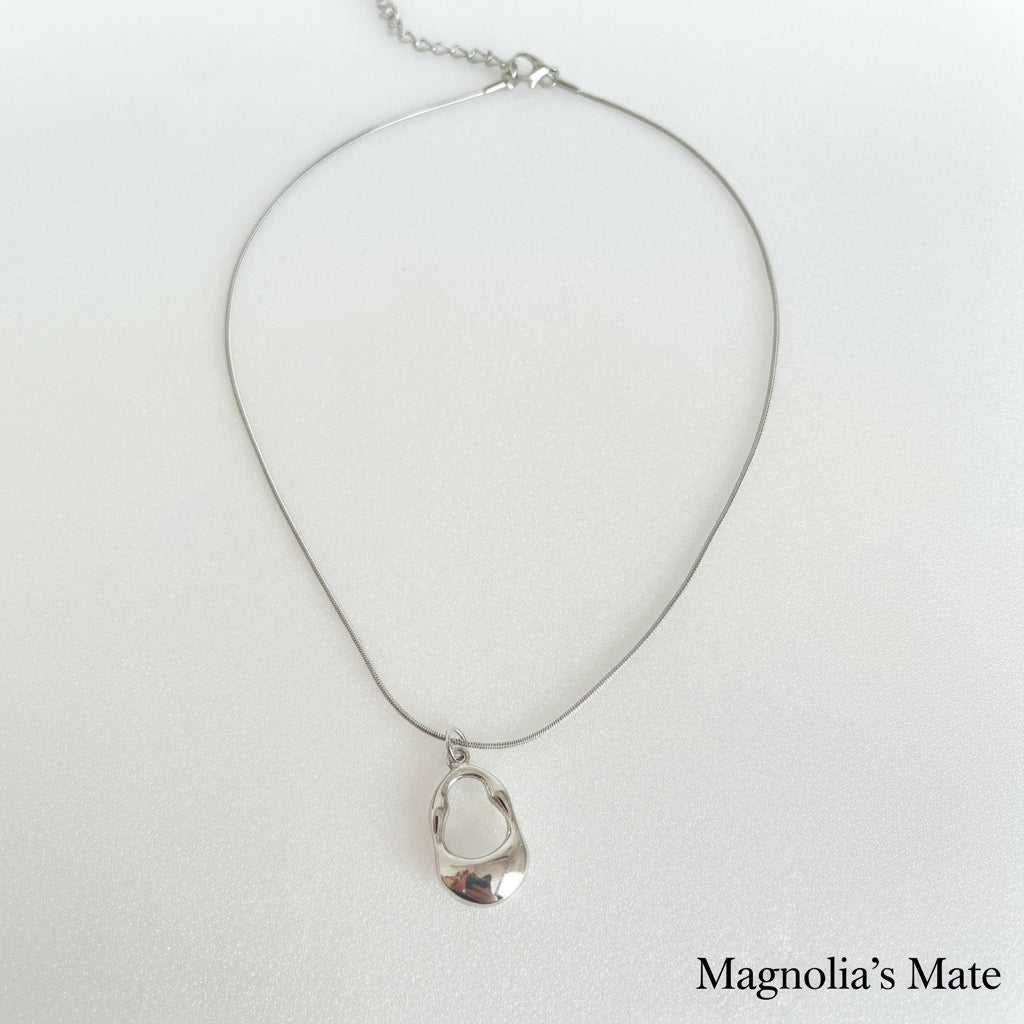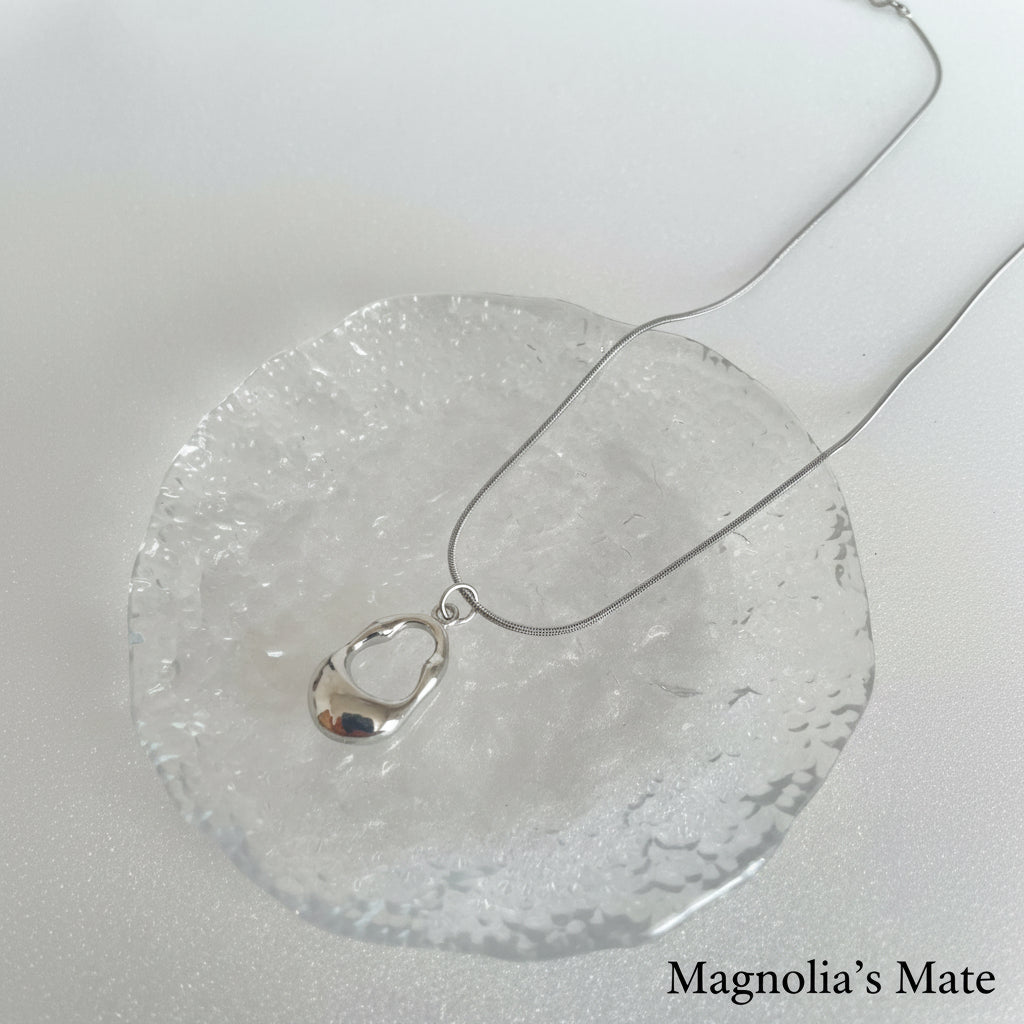 ニュアンスフォルムのメタルチャームが印象的なネックレス。