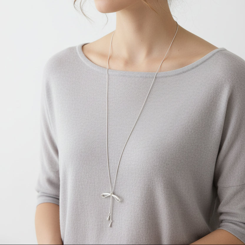 チェーンに小さなリボンをあしらった可憐なY字ネックレス。