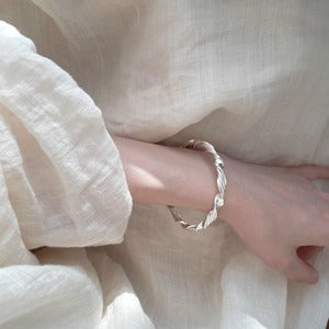 ひねりを加えた立体ラインが手元にリズムを生むフォルムのブレスレット。