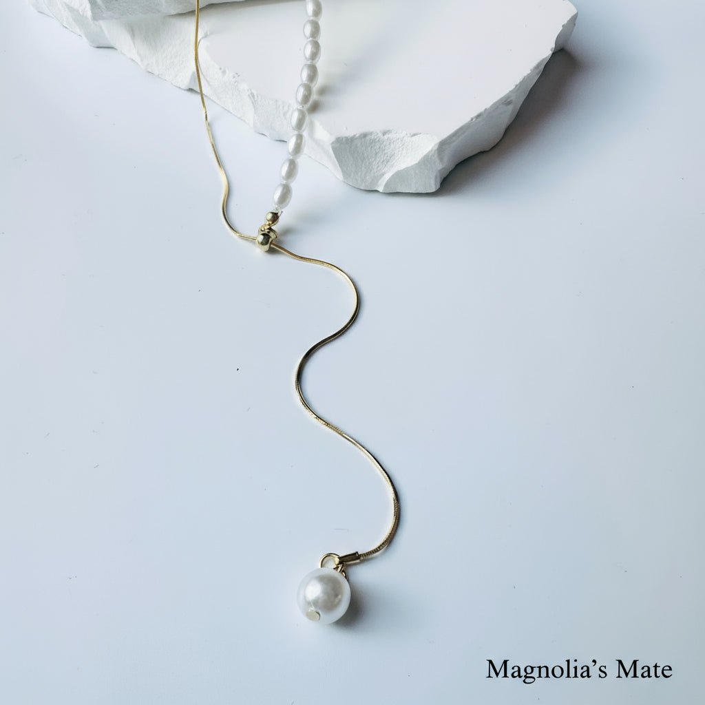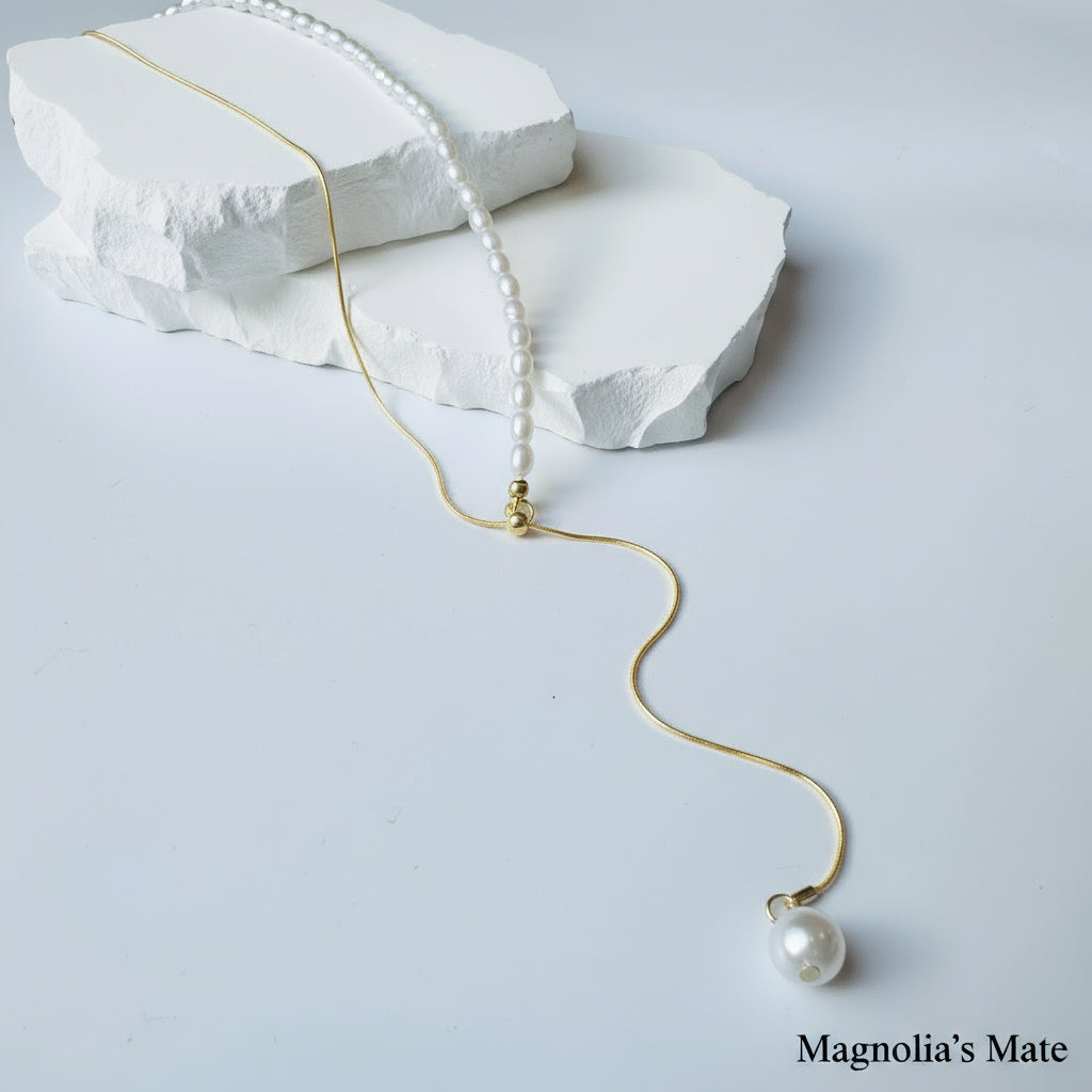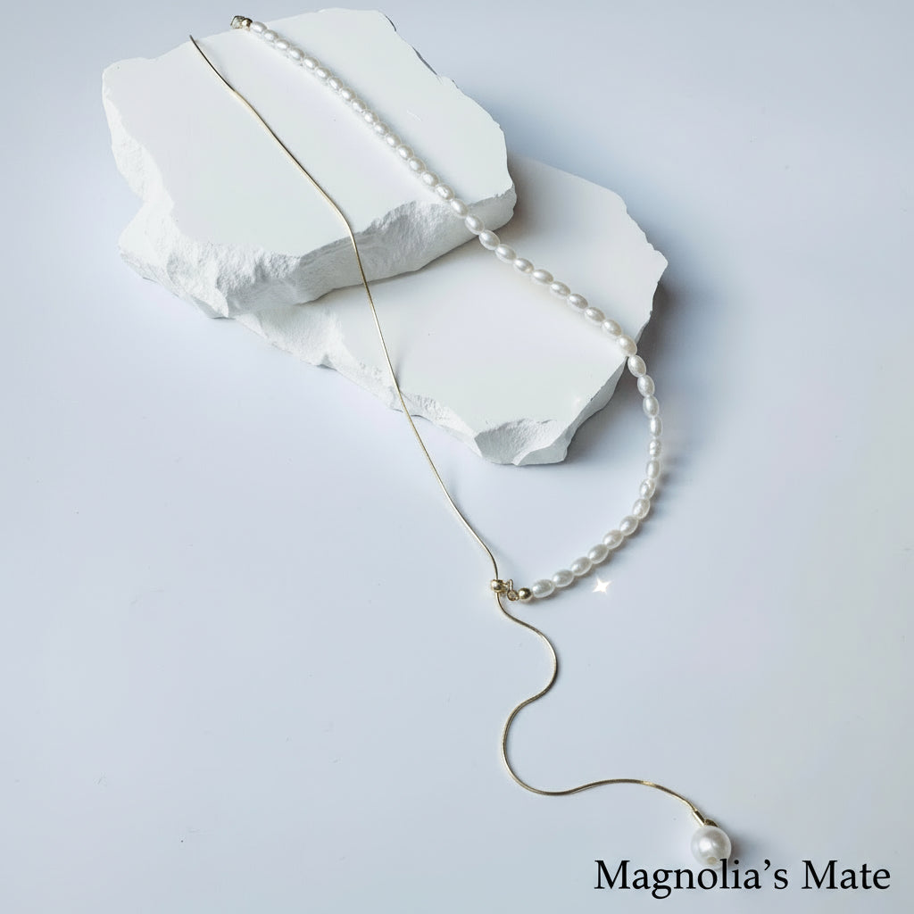 トップには小さなゴールドのアクセントが輝き、エンドには上品なパールが揺れるエレガントな仕上がりに。フォーマルにもカジュアルにも合わせやすく、特別な日の装いにもぴったりです✨