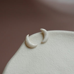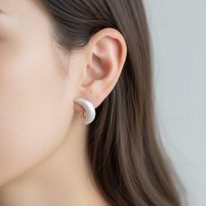 シンプルながらもどこか神秘的な雰囲気を添える、小さな月のイヤリング。