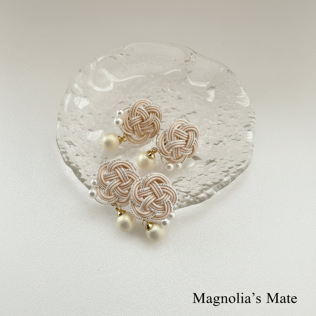 花結びコットンパール イヤリング/ピアス【予約商品】