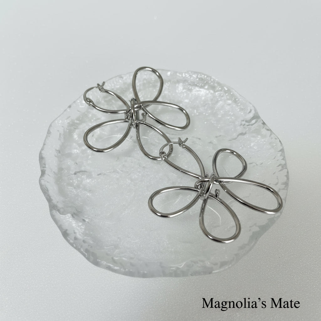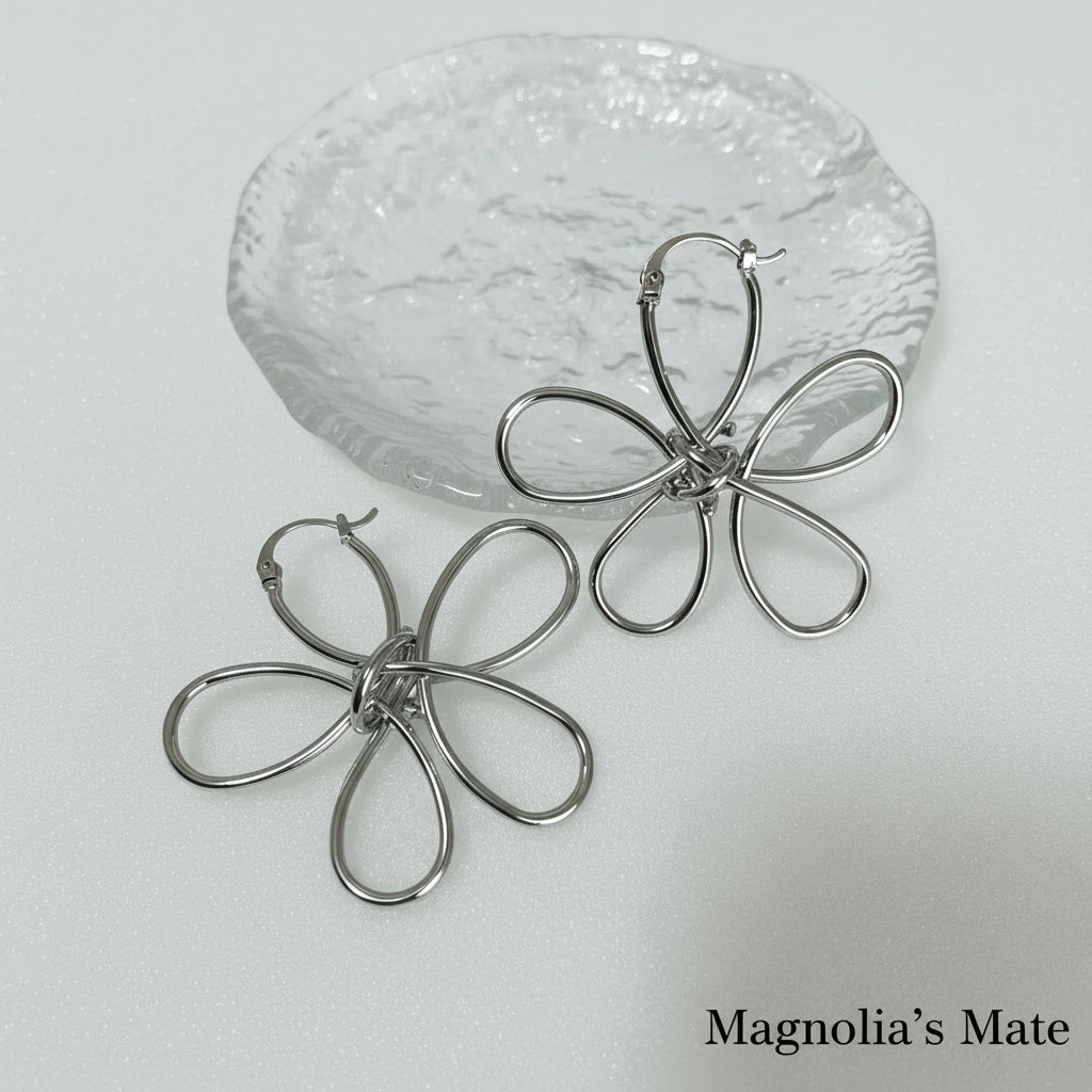 立体フラワーデザインのピアス。