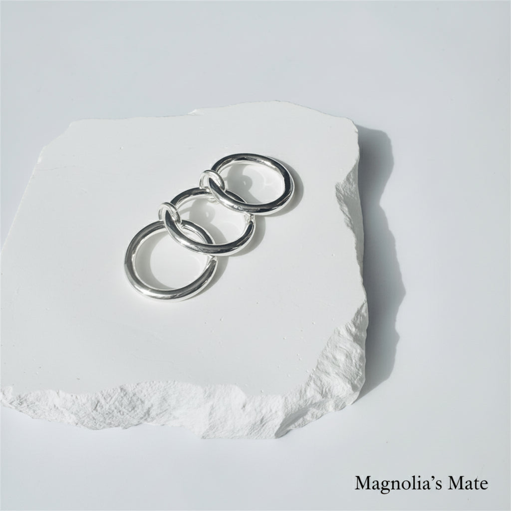3つのシルバーリングが繋がれたデザインのおしゃれな2wayリング。
