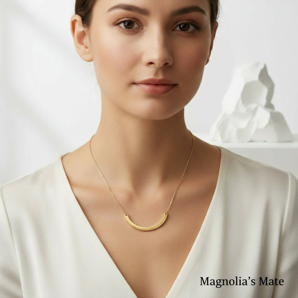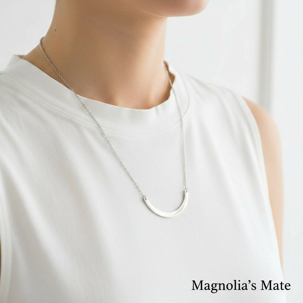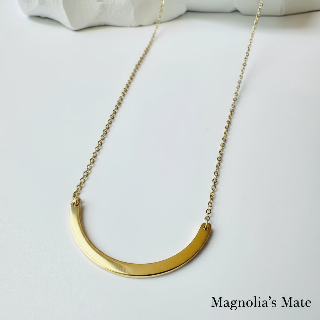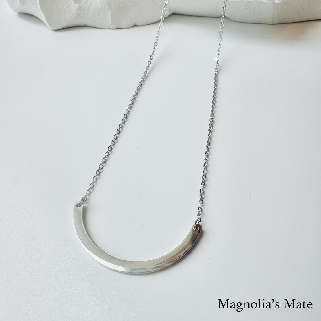 カーブしたチャームが美しい繊細なネックレスです。
