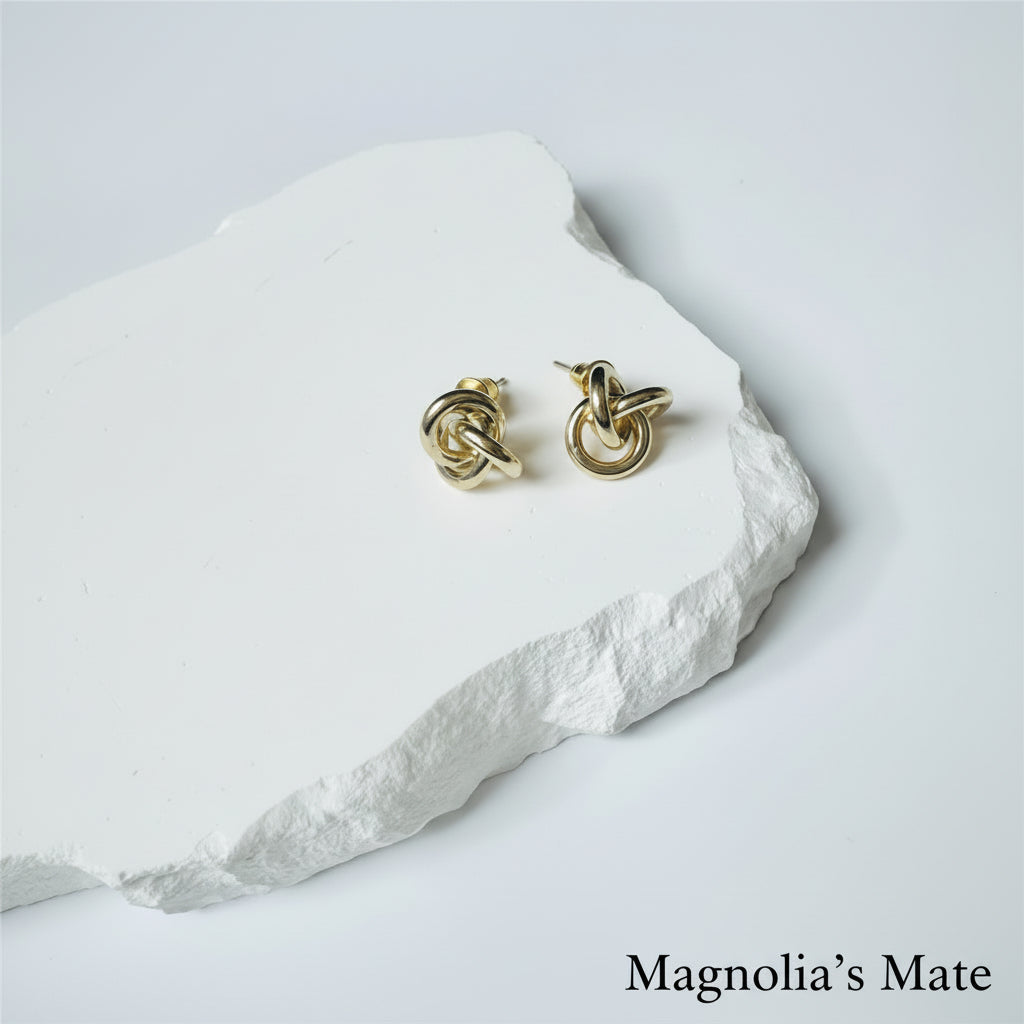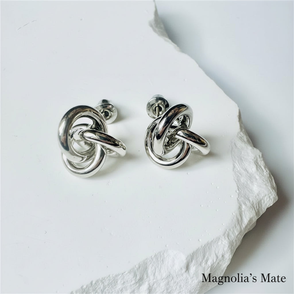 3つのリングが重なり合ったような結び目デザインのスタッドピアスです。