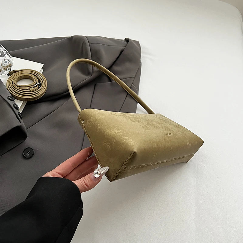 光の角度でさりげなく艶めくベロアタッチ素材が上品なミニショルダーバッグ。