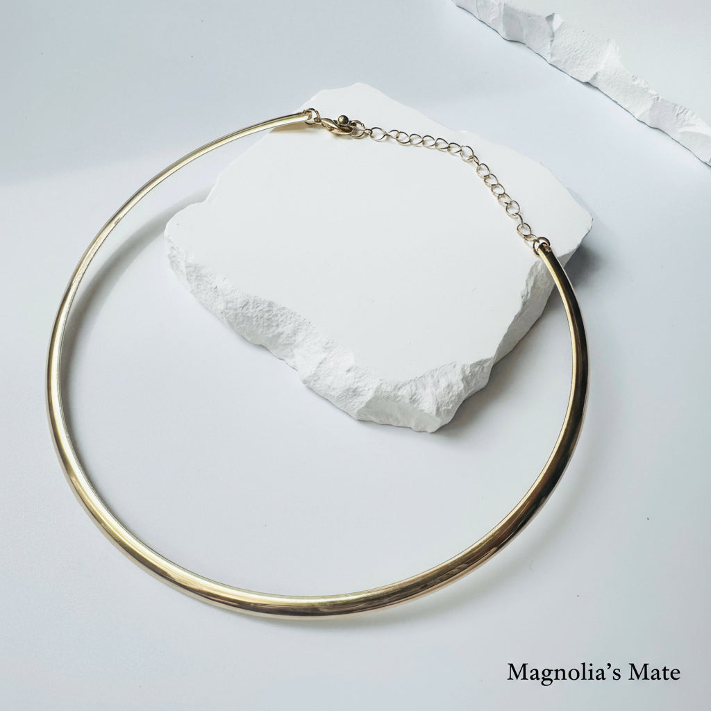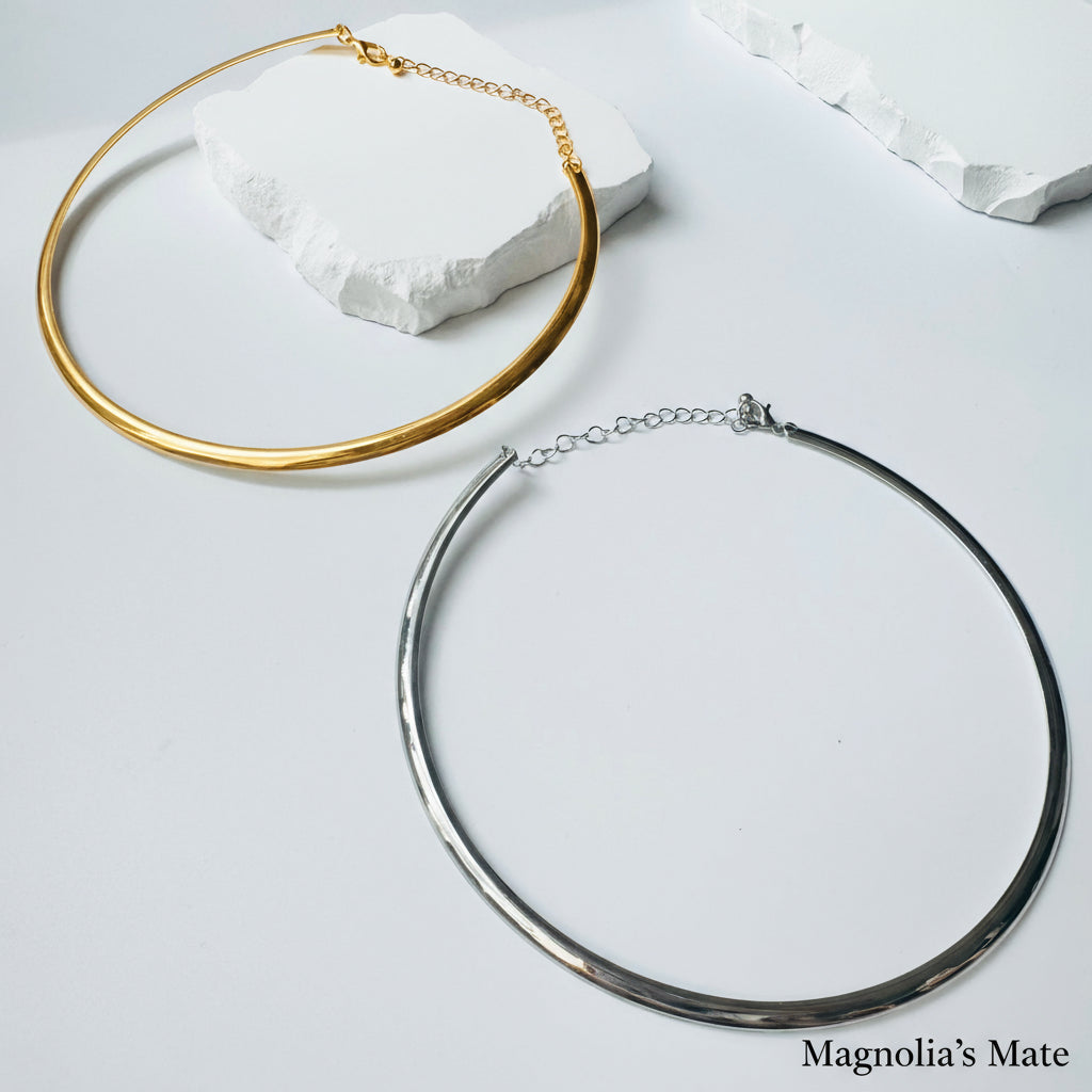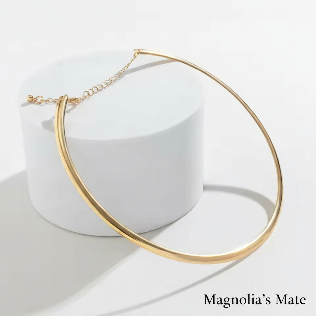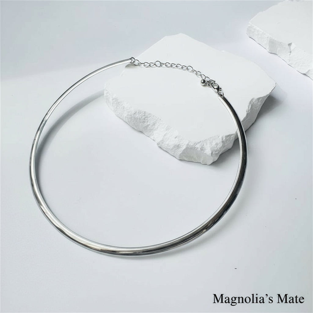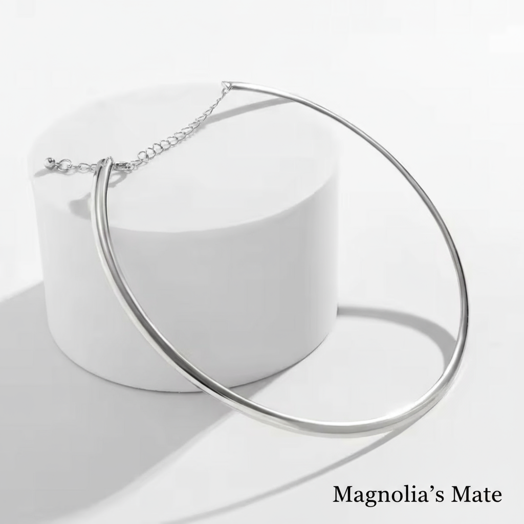 シンプルでありながらも存在感のあるデザインが、首元を華やかに彩ります。