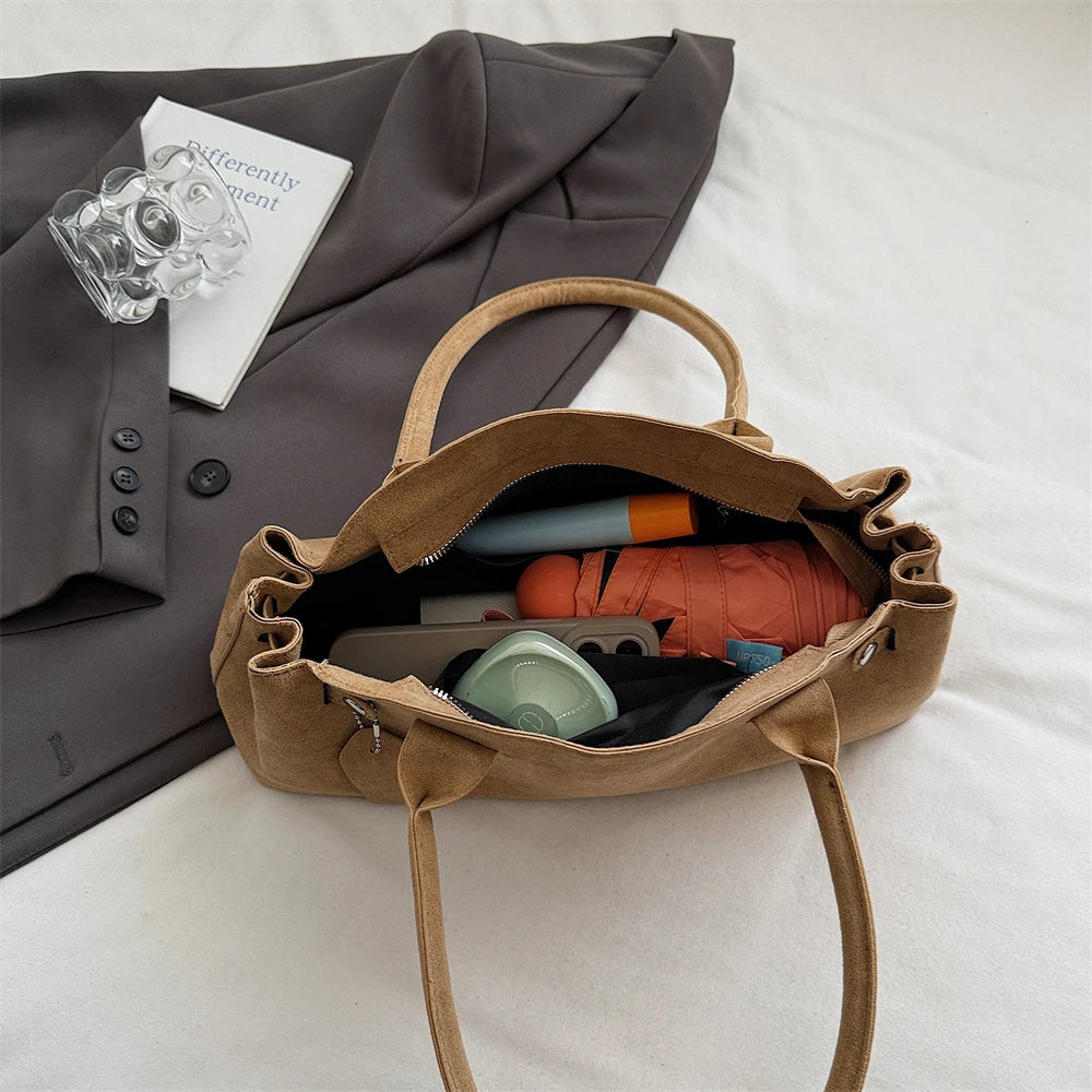 長めのハンドルで、肩掛けと手持ちの両方に対応します。