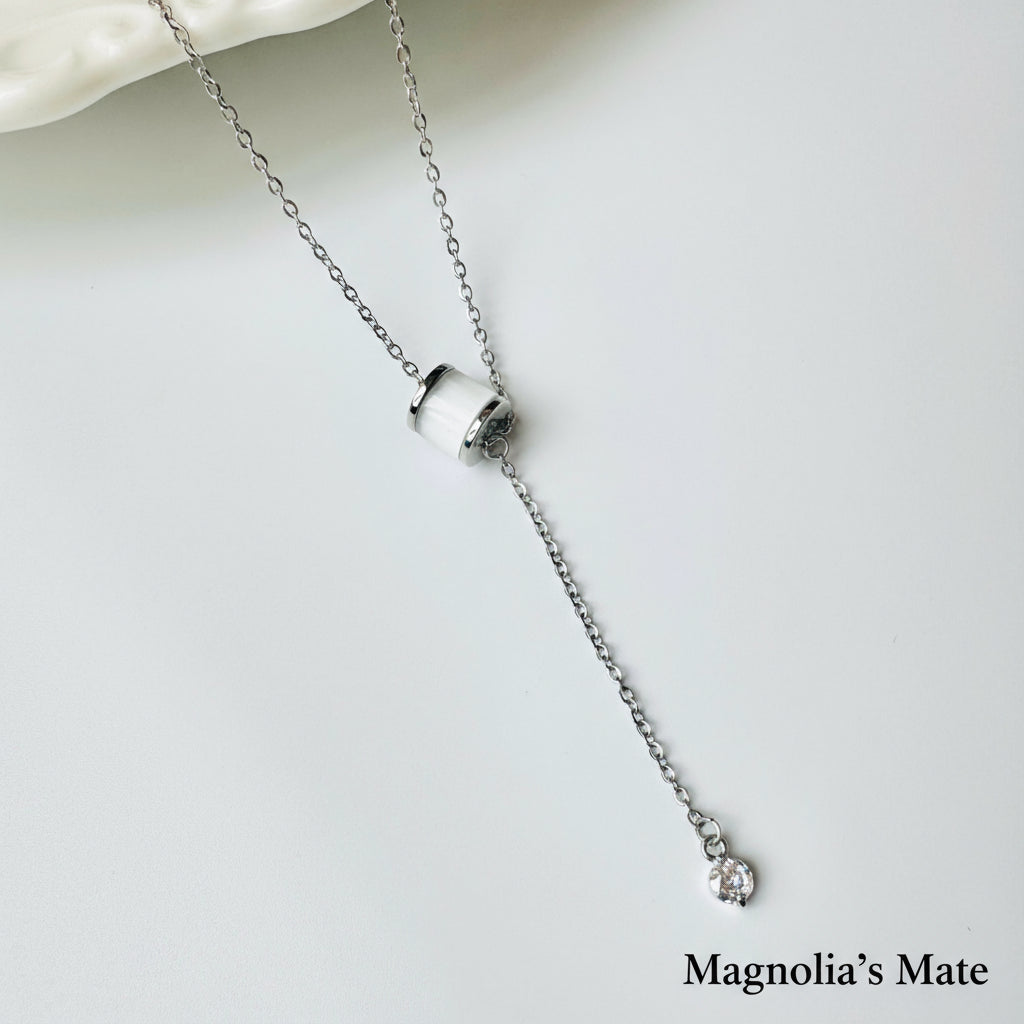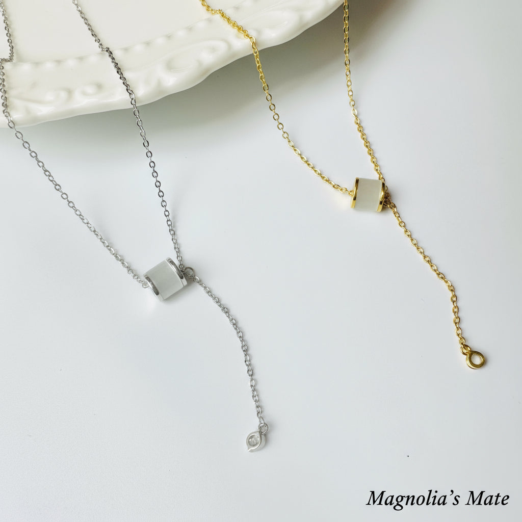 円柱型のオパールのペンダントトップがアクセントのネックレスです。