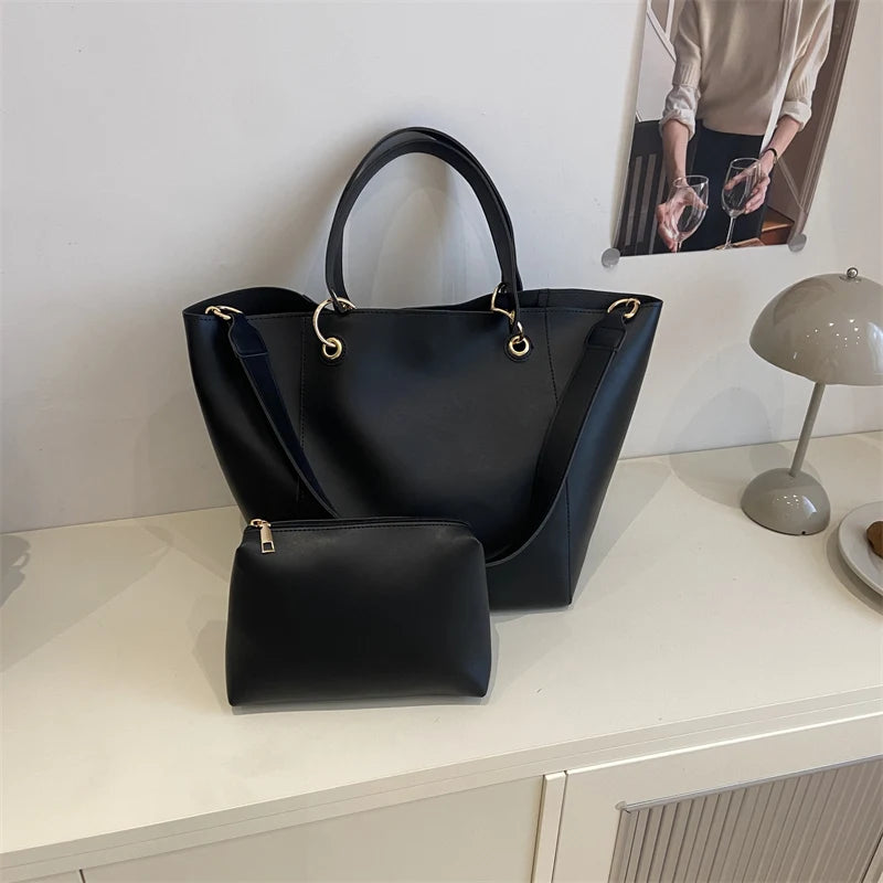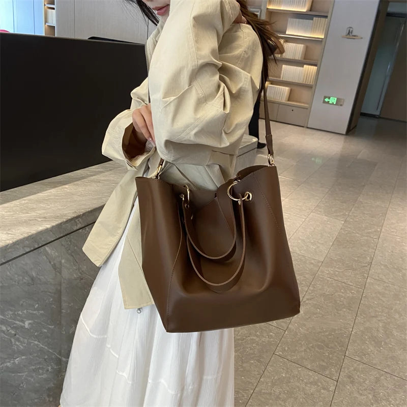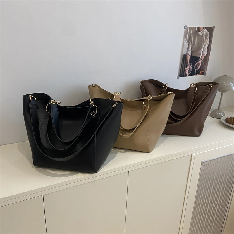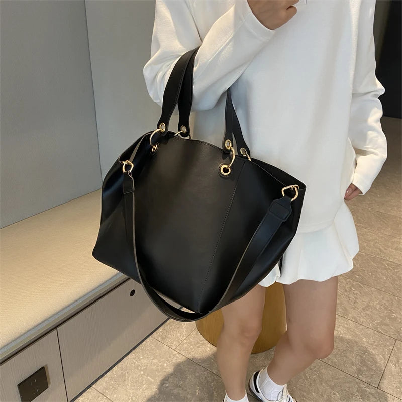 柔らかなフォルムの上品な大容量2wayトートバッグ。