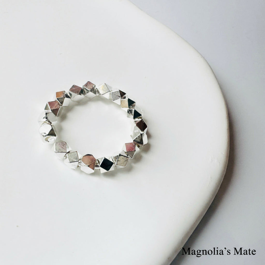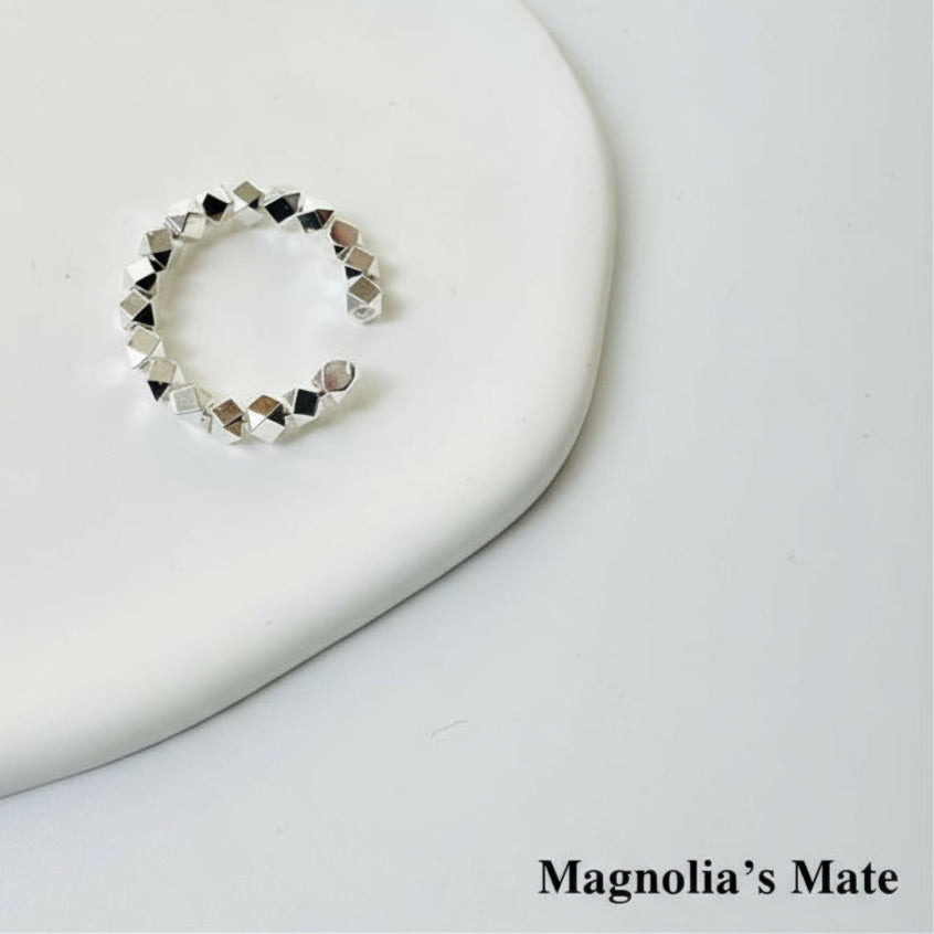 シンプルながらもスタッドのような形が、手元にモダンなアクセントを加えます。