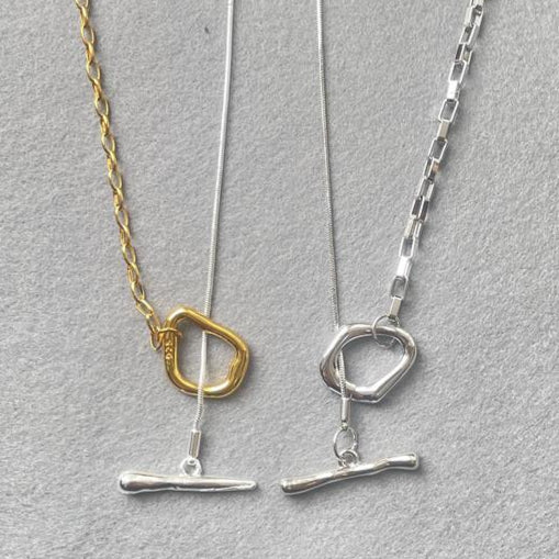 繊細なスネークチェーンと女性らしいシルバーチェーンの組み合わせは