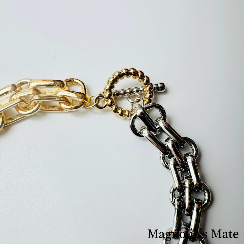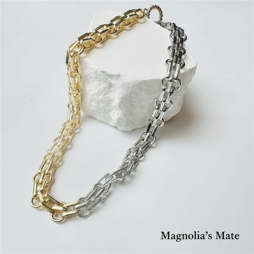 ツートーン重厚チェーンネックレス 【スピード配送】